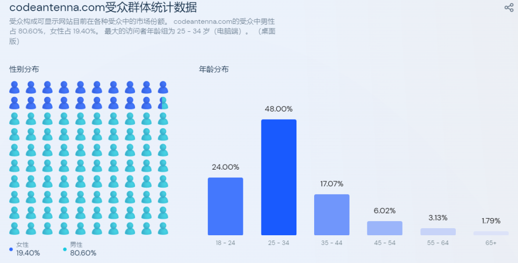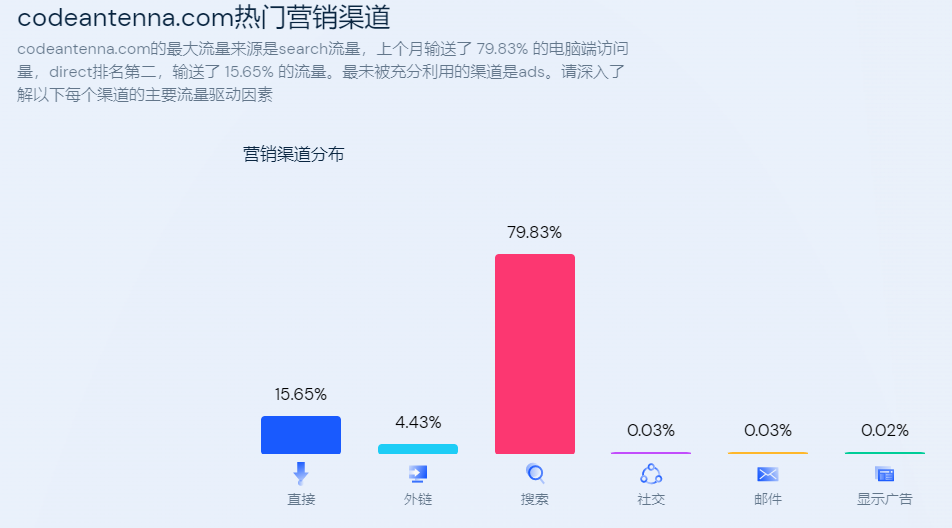 如果你对上面这个流量增长策略持有怀疑,那么可以看看这个例子:codeantenna.com ,它几乎是上述策略的复刻版。它从CSDN上采集了大量技术文章,并通过Google搜索中获得了巨大的流量。在我写本文时,其Alexa世界排名在第 2609名。以下是第三方流量分析工具对其的部分分析报告: